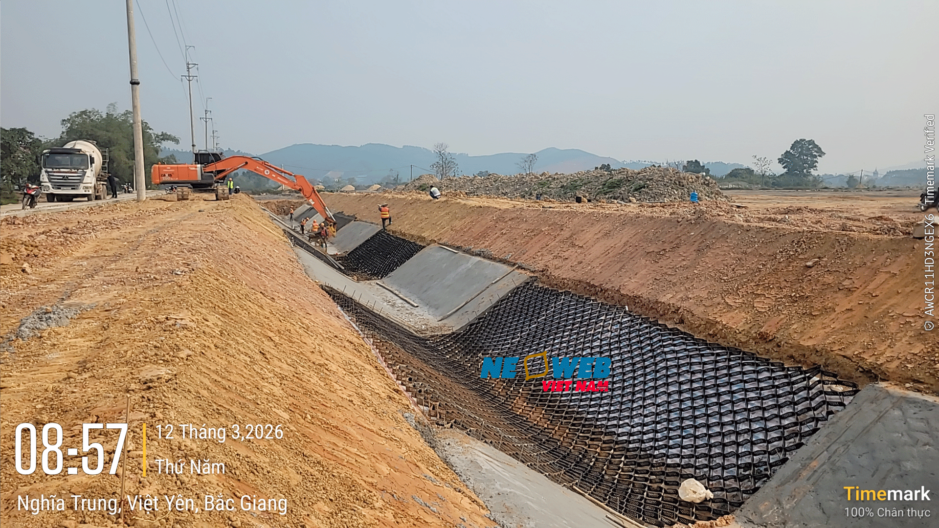 GIA CỐ MÁI KÊNH BẰNG NEOWEB CHÈN BÊ TÔNG
